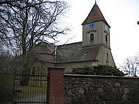 Kirche von 1767, im Kern rechteckiger Backsteinbau mit Westturm, 1904 neobarock umgestaltet und erweitert.