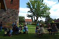 Die Kirche![]() Von den Pilgerströmen vergangener Zeiten und ihren Almosen kündet noch heute die eindrucksvolle Wallfahrtskirche in Alt Krüssow, ein spätgotischer Saalbau mit einer nördlich angefügten Kapelle. Begonnen wurde mit der Errichtung des Kirchenschiffs als Feldsteinbau vermutlich in der zweiten Hälfte des 15. Jahrhunderts. Eine überlieferte Inschrift wies auf den Havelberger Bischof Johann von Schlabrendorf (1501 – 1520) als Stifter hin. Während seiner Amtszeit begann vermutlich die zweite Bauphase, die in der erheblich kostspieligeren Backsteintechnik erfolgte und sich stilistisch an der kurz zuvor errichteten Wallfahrtskapelle in Heiligengrabe orientierte.