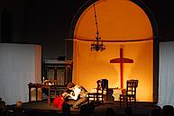 Die Leiterin der Schauspielgruppe, Heidi Walier, hat das Stück so geschickt gekürzt, dass sie mit sechs Darstellern auskam, ohne die Struktur erheblich zu verändern.